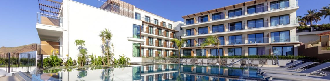 Das Hotel ist nicht nur auf ungewöhnliche Weise direkt an die Klippen gebaut – mit fantastischem Blick auf den Atlantik schon beim Frühstück! Außergewöhnlich ist auch die Vorreiterrolle als erstes Ökohotel Madeiras, nachhaltig und energieautark seit Sommer 2018.