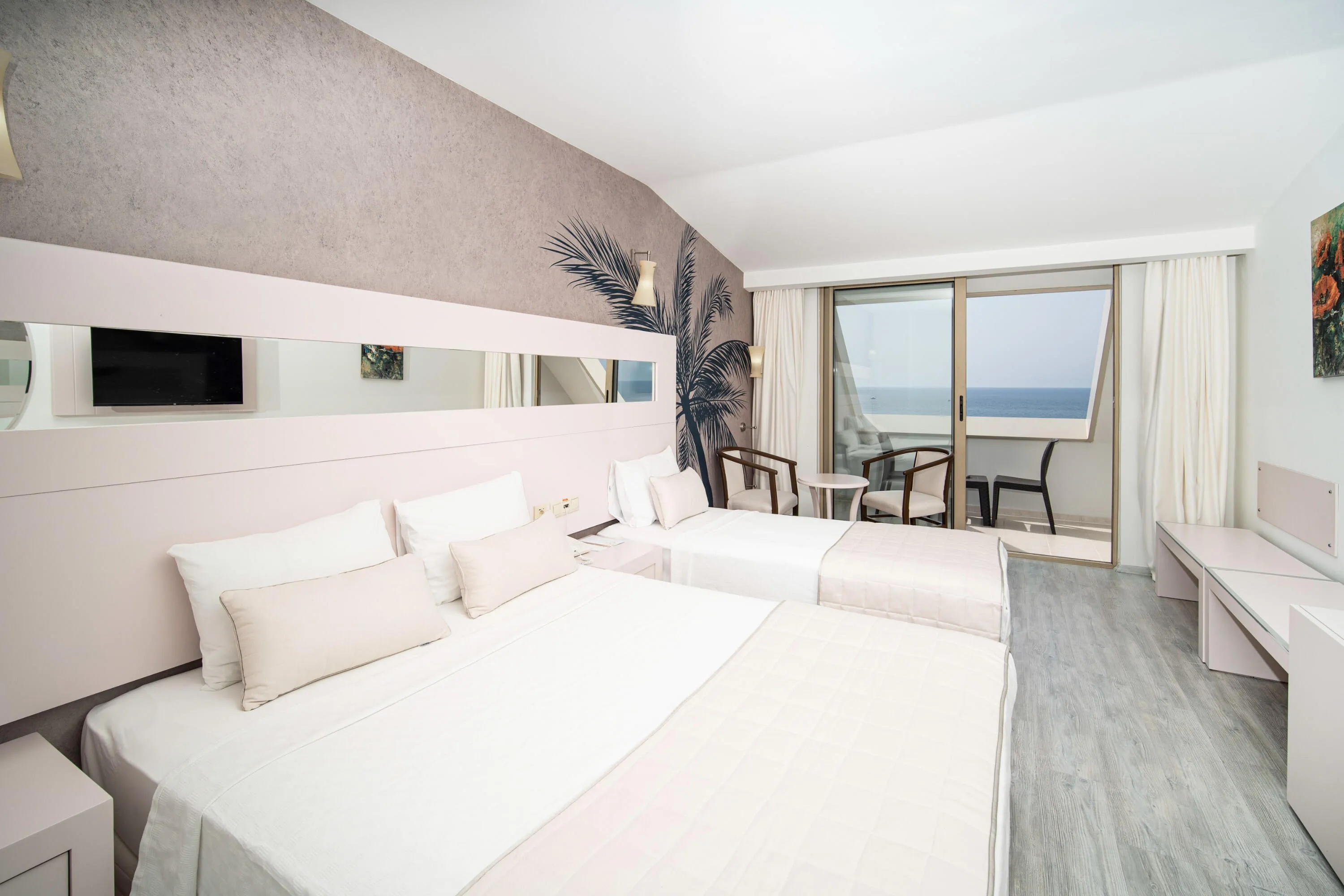 Das Hotel bietet insgesamt 219 Zimmer in den folgenden Zimmerkategorien: Doppelzimmer Landblick, Doppelzimmer Meerblick, Großes Doppelzimmer und Familienzimmer mit Meerblick.