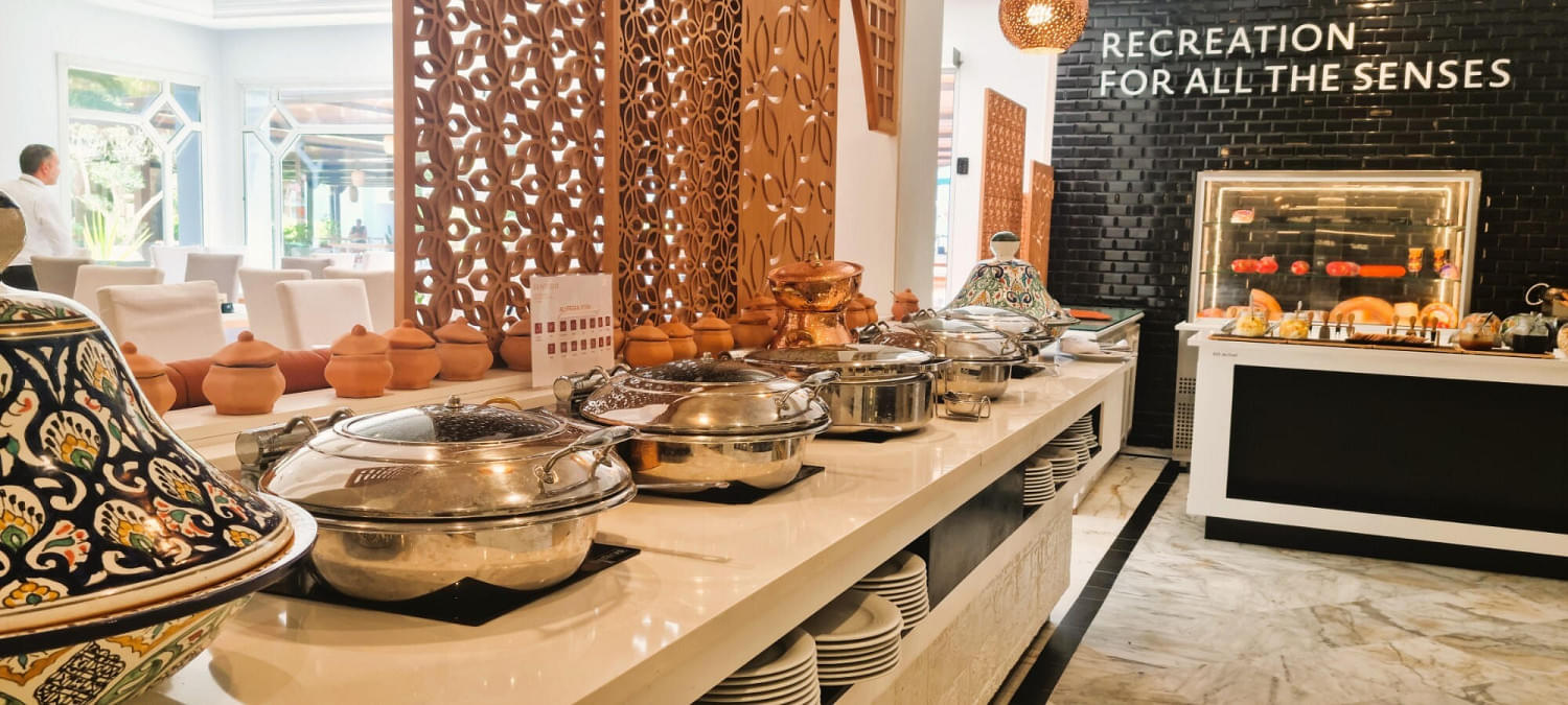 - Specialty buffet restaurant “LE BERBERE”: local cuisine, traditional and oriental cuisine with self-service buffet, buffet, dinner from 7 p.m. to 9:30 p.m. (opening hours: daily except Wednesdays), reservation required