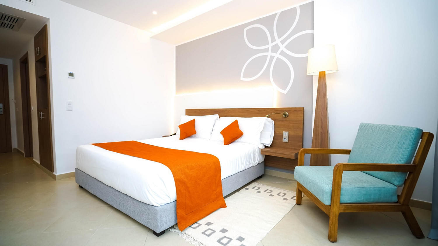 Sentido Fitness Room 41-45 sqm, double bed, adults only, open-plan living room and spacious sleeping area, ideal choice for fitness enthusiasts, king-size bed, sofa, seasonal air conditioning/heating (June 15-September 15), bathroom with shower and bathtub, bathrobes and slippers, separate toilet, night shift housekeeping, main building, pool view, 100% organic cotton bed linen, towels, and mattresses, towel change (daily), room service for an extra charge and a wake-up service, free Wi-Fi, tea or coffee making facilities (Nespresso machine), cosmetic mirror and hairdryer, safe, LCD TV with international channels, mini fridge (1x refill per person on arrival day included), balcony with stunning pool view (smoking and vaping prohibited) |