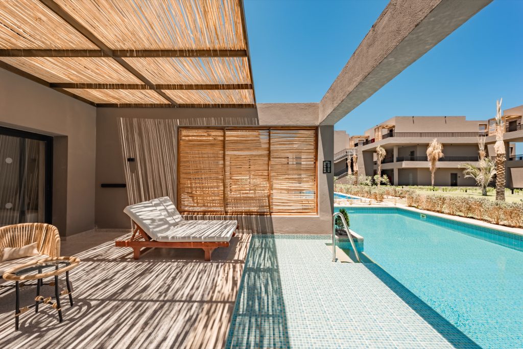 ca. 56 – 57 qm, Swim Up Junior Suite mit Gartenblick, direkter Zugang zum Pool von Terrasse (shared pool, nicht beheizt), teilweise mit zusätzlichem Poolblick, Klimaanlage, mit Kingsize Doppelbett und Extra Bett oder Sofa / oder mit Twin Betten und Sofa, Zimmer teilweise mit Verbindungstür, Bad mit Dusche, WC, Haartrockner, Kosmetikspiegel, Minibar (kostenpflichtig), Safe (kostenfrei), TV, Telefon, WLAN (kostenfrei), Kaffee/Tee, Balkon oder Terrasse (Nichtraucherzimmer)