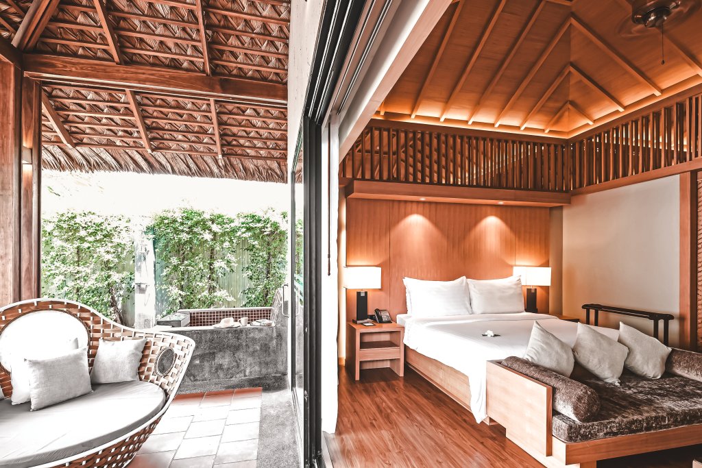 71-80 qm, Villa, Gartenblick, Dusche, Außendusche, WC, Haartrockner, Klimaanlage, Minibar, Auffüllung täglich, Safe, TV (Sat-TV, deutschsprachiges Programm), Kaffeemaschine, Kaffee/Tee, Terrasse (möbliert), Whirlpool