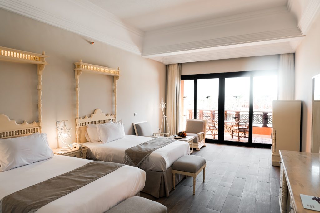 36-40 qm, Doppel, Hauptgebäude, Poolblick, Twinbetten (1 Queensize oder 1 Twin), Dusche, Haartrockner, Kosmetikspiegel, Klimaanlage, Minibar, tägliche Auffüllung mit Wasser sowie 1x pro Woche mit Softdrinks, Safe, TV (Sat-TV), WLAN, Kaffee/Tee, Balkon oder Terrasse
