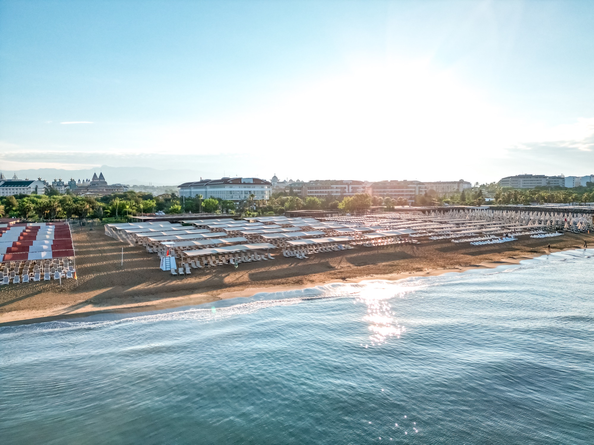 • Sandstrand: von der Anlage getrennt durch Promenade, Sonnenschrime, Liegen, Strandtuch/Badetuch, 01.04.-31.10.