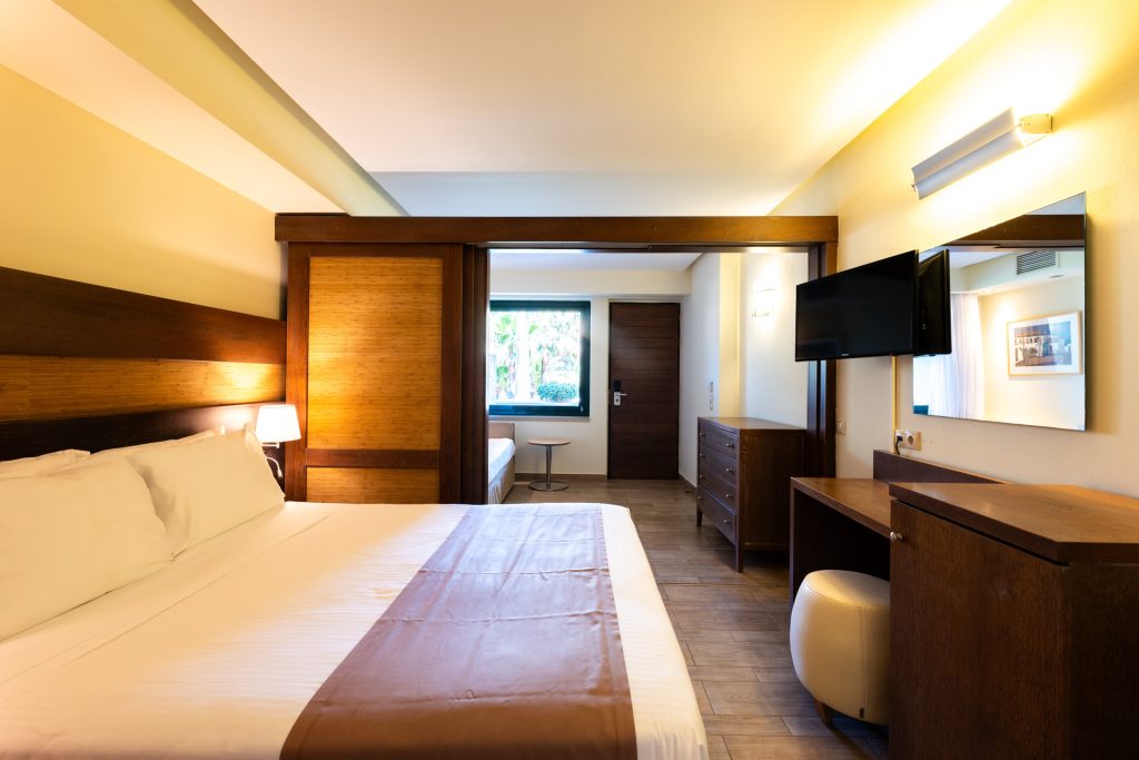 26-30 qm, (teilweise mit Meerblick oder seitlicher Meerblick), liegt im Nebengebäude, renoviert, 1 Doppelbett (Queensize), Sofabett, 1 Bad, Dusche, WC, Klimaanlage, ca. 01.06.-30.09., Safe (kostenpflichtig), 1 Kühlschrank, 1 TV (Sat-TV, deutschsprachiges Programm, sonstiges Programm, Flachbildschirm), WLAN, Balkon oder Terrasse