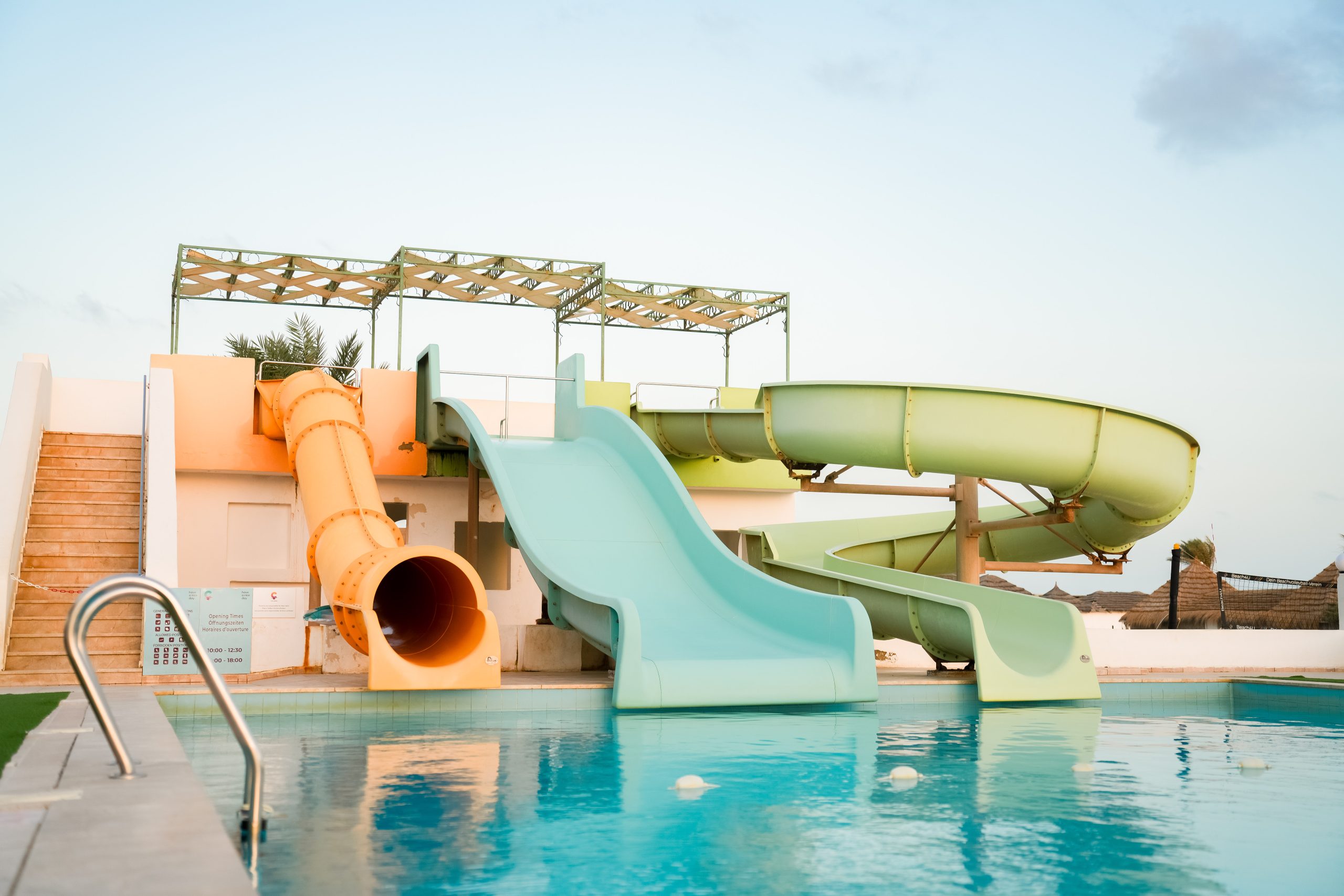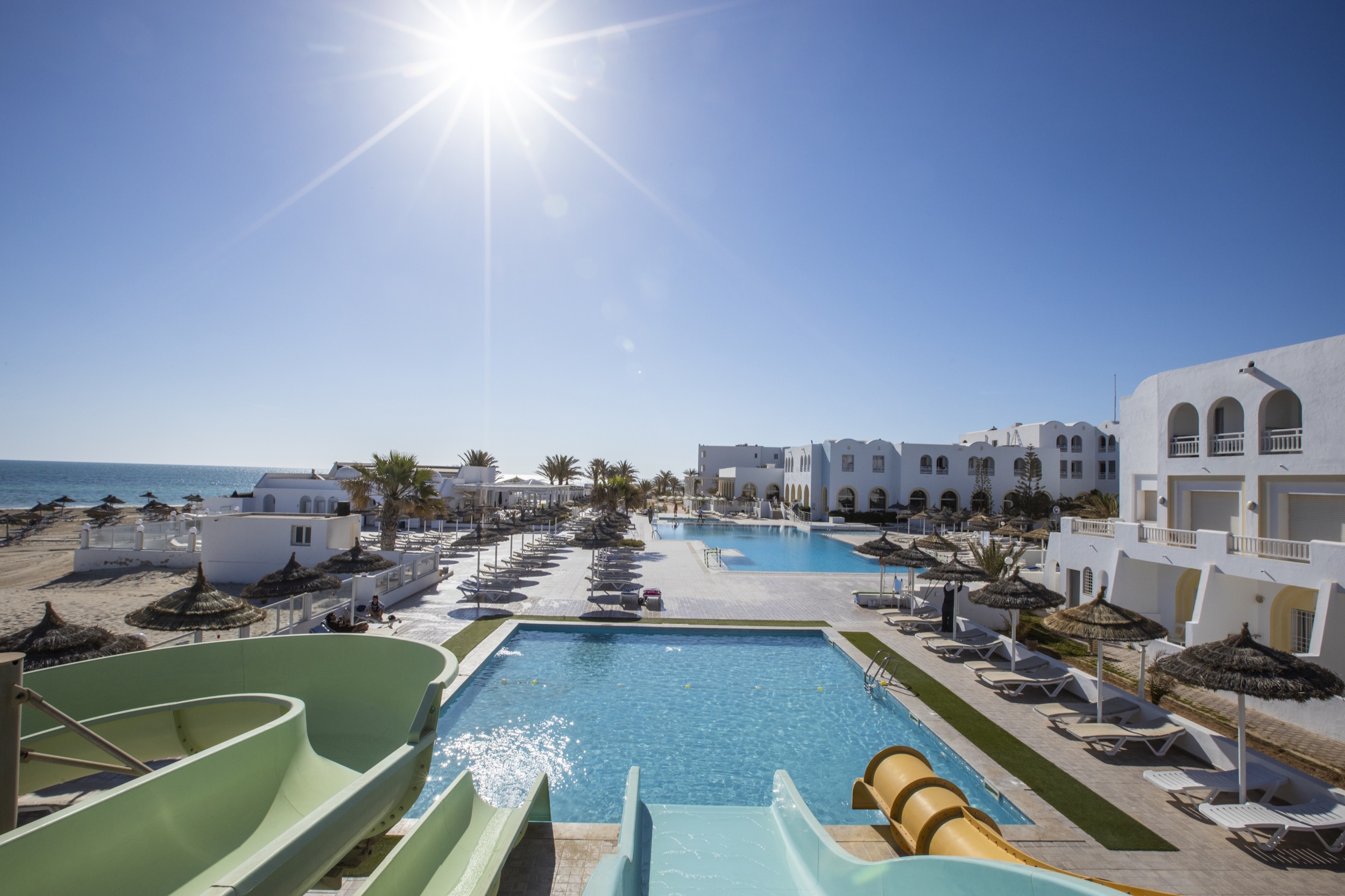 • 1 pool: open all year round, fresh water, water slides, parasols, sun loungers, pool towel (deposit required)