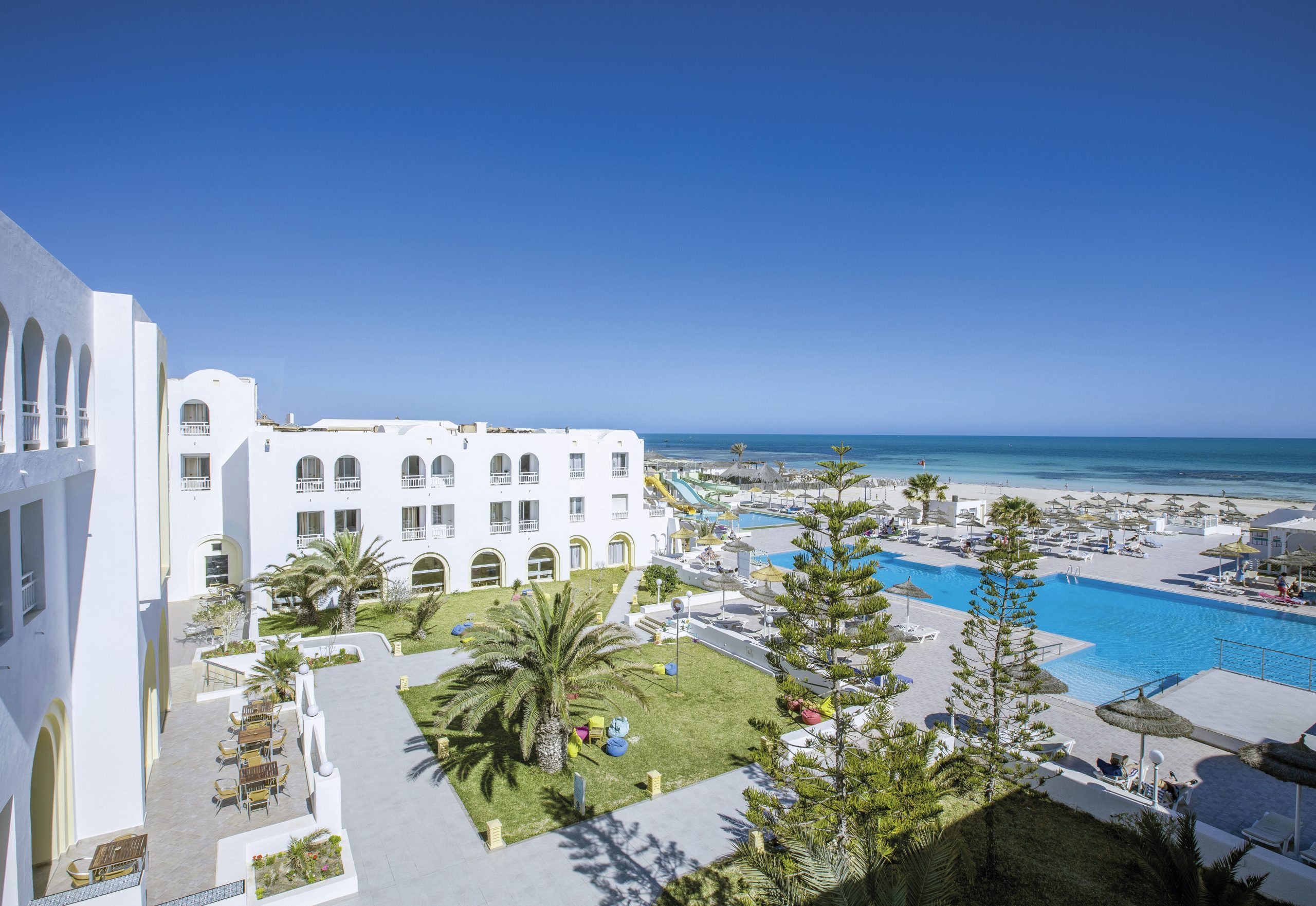 The 4-star family hotel on the north coast of the island of Djerba invites you to spend a varied and relaxing holiday under the Tunisian sun. Picturesque sandy beaches, turquoise sea, a wide range of sports and entertainment activities for young and old and a varied all-inclusive offer just like at Calimera Hotels.