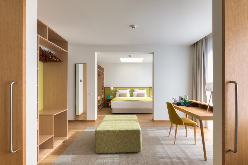 Meerblick (seitlich), 1 separates Schlafzimmer, 1 Bad, Dusche, Haartrockner, Kosmetikspiegel, Minibar kostenpflichtig, Safe, 1 TV (Smart-TV), Telefon, WLAN, Wasserkocher, Kaffee/Tee, Balkon (möbliert), Fitnessgeräte, wie z.B. Kardiogerät, Stahl-Springseil, Faszienrolle, 3er-Set Elastikschläuche mit 2 Griffen (leicht, mittel und stark), Balancebrett aus Holz, Latexschlauch (mittlerer Widerstand, ca. 1,20 m lang), Gymnastikball (ca. 75 cm), Bauchtrainer (Ab Wheel/double wheel), Yogamatte, Suspension Training-Set, Hantelset, Holzrückenlehne (ca. 100 x 240 cm) für hochintensives Intervalltraining bis Suspensionstraining, Aroma diffuser, Liste mit Trainingstipps von professionellen Instruktoren.