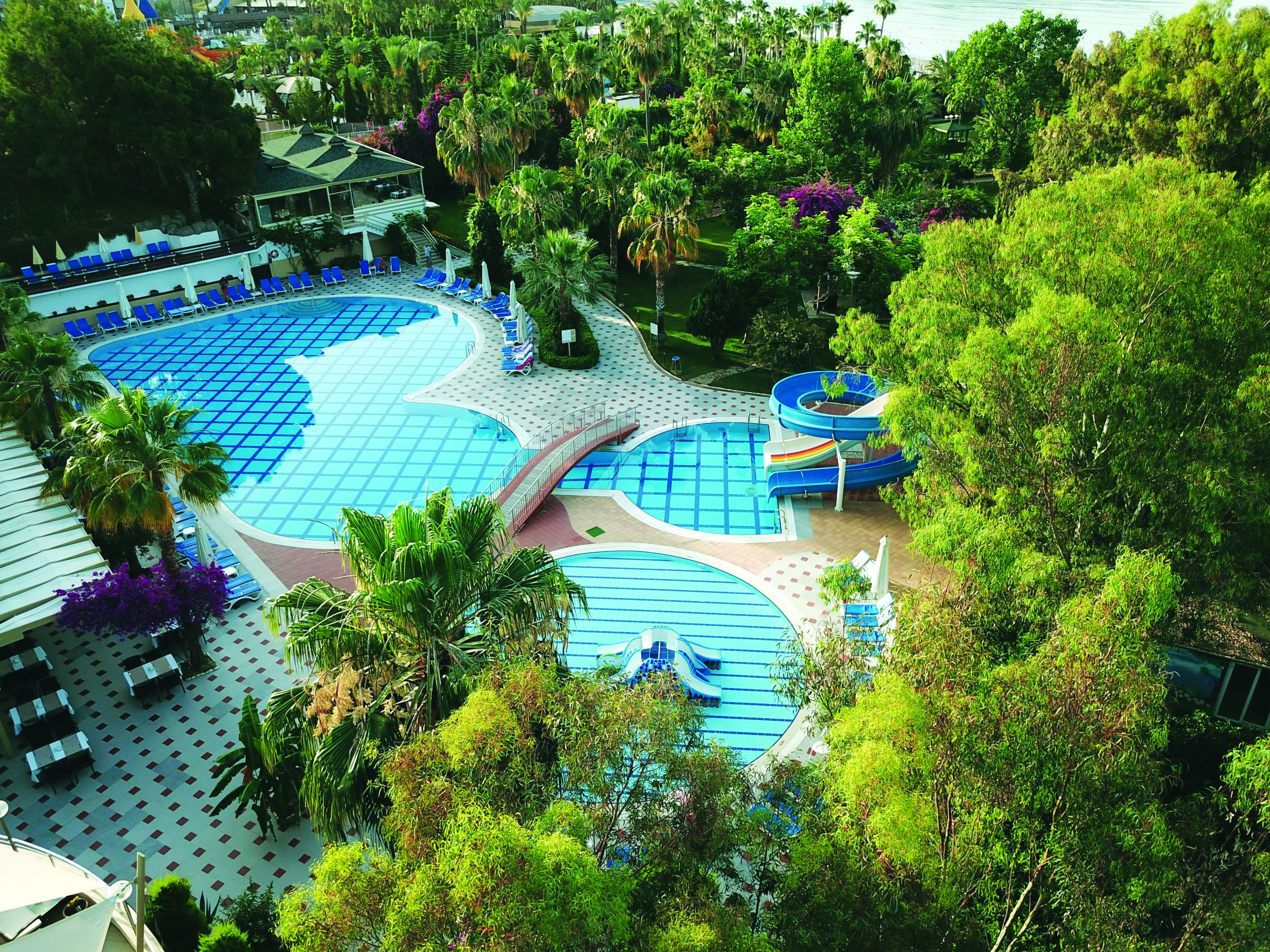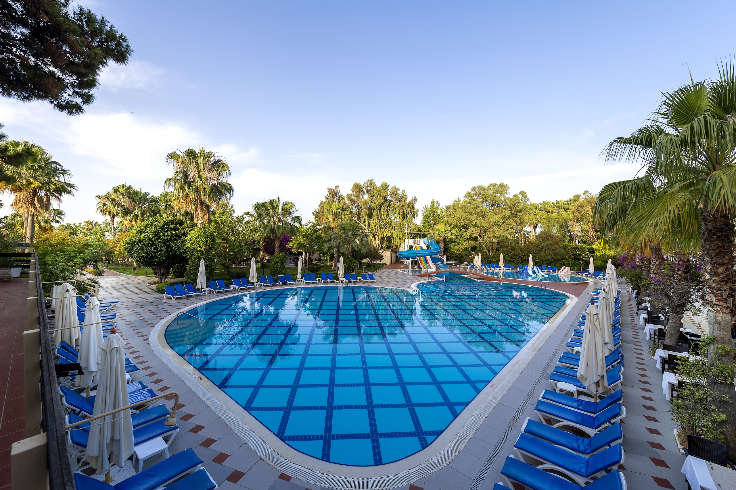 • 1 Pool: Wasserrutschen: 2 (ca. 01.04.-31.10., Betriebszeiten), Sonnenschirme, Liegen, Badetuch (gegen Kaution)