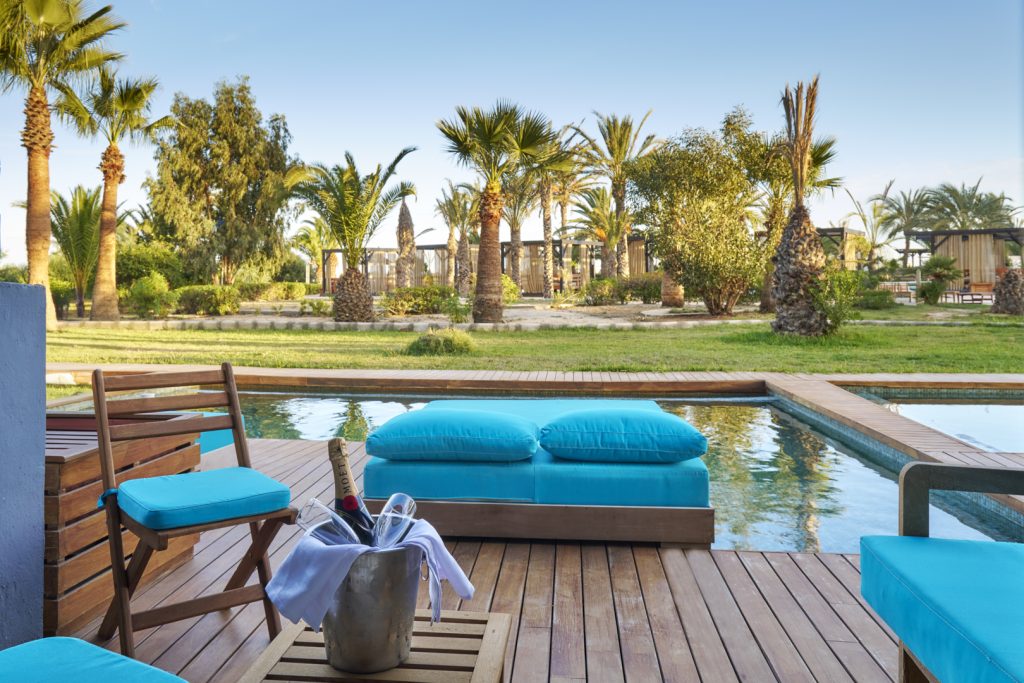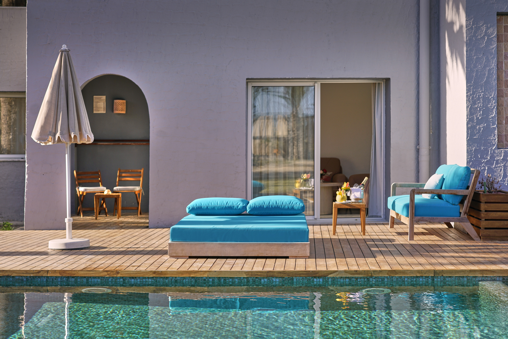 31-35 qm, Doppel, Adults-Only, Direkter Pooleinstieg von Terasse, 1x Schlafzimmer mit Doppelbett oder 2x Einzelbetten und 1xSchlafsofa, Privater Pool mit Liegestühlen auf jeder Terrasse, saisonale Klimaanlage/Heizung (15.06-15. 09), Badezimmer mit Dusche und Toilette, Bademäntel und Hausschuhe, Housekeeping Nachtschicht, im Hauptgebäude, Poolblick, Bttwäsche, Handtücher und Matratzen aus 100% Bio-Baumwolle, Handtuchwechsel (täglich), Zimmerservice gegen Aufpreis und einen Weckdienst, kostenloses Wi-Fi, Tee- oder Kaffeezubereitungsmöglichkeiten (Nespresso-Maschine), Vergrößerungsspiegel und Haartrockner, Safe, LCD-Fernseher mit internationalen Kanälen, Minikühlschrank (Auffüllung 1x p.P. am Anreisetag),umweltfreundliche Holzterrasse mit direktem Zugang zum Gemeinschaftspool (Rauchen und Dampfen verboten)