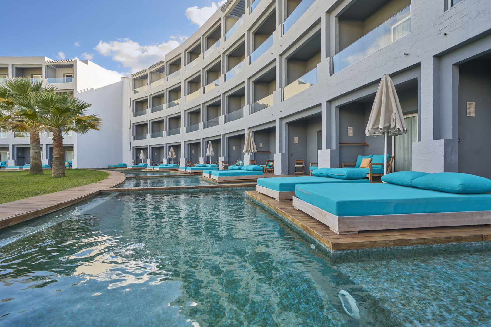 41-45 qm, Juniorsuite, für Erwachsene ab 18 Jahre, Poolblick (direkt), Bettwäsche, Handtücher und Matratzen aus 100% Bio-Baumwolle, Sitzecke, 1 Doppelbett (Kingsize), 2 Sofabetten, 1 Bad, Dusche, separates WC, Bademantel, Badeslipper, Haartrockner, Kosmetikspiegel, Klimaanlage, ca. 15.6.-15.9., Heizung, Mini-Kühlschrank, Safe, 1 TV (Sat-TV, deutschsprachiges Programm, landestypisches Programm, sonstiges Programm), WLAN, Wasserkocher, Kaffee/Tee, Balkon oder Terrasse, direkter Poolzugang, Handtuchwechsel (täglich), bei Ankunft im Zimmer Wasser