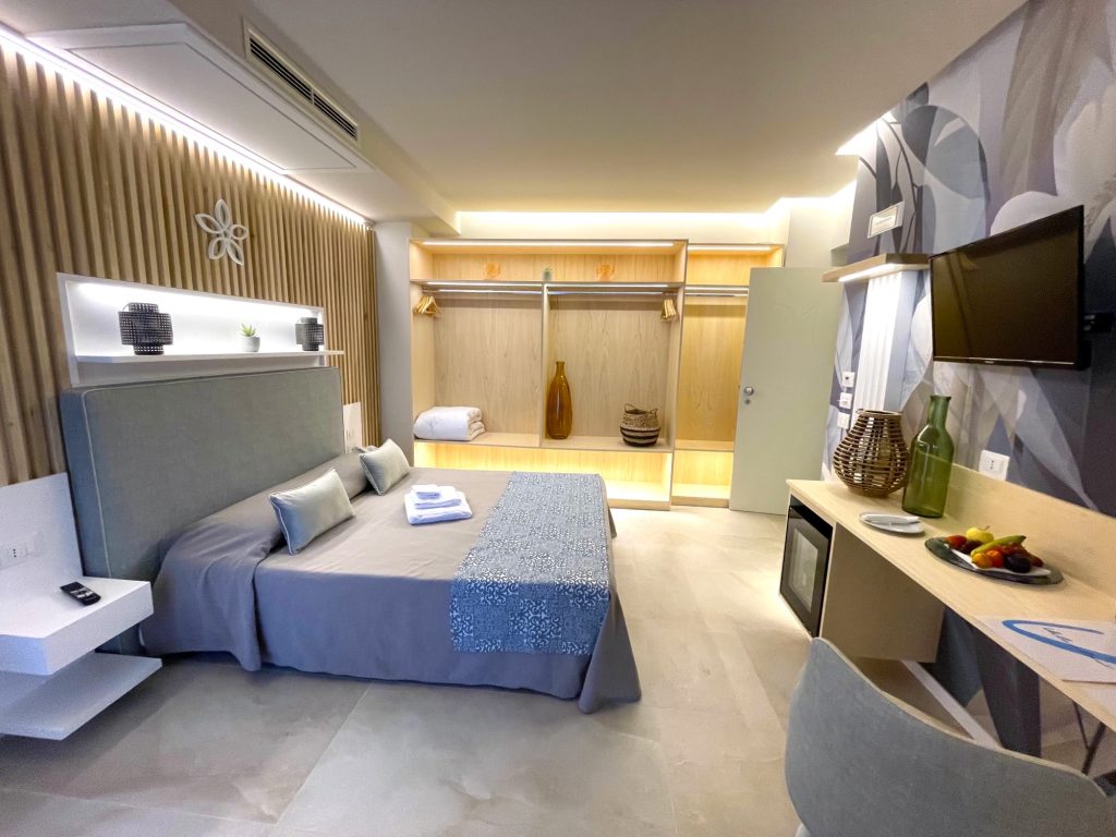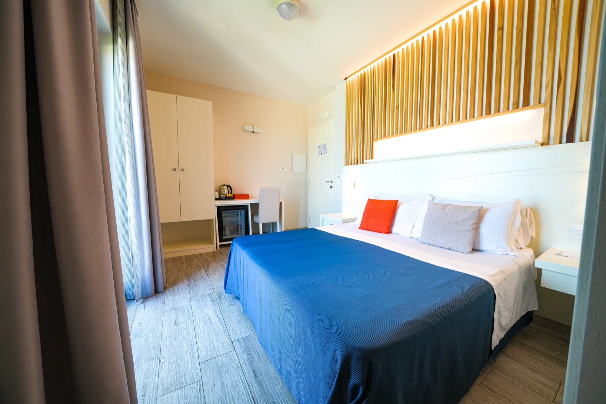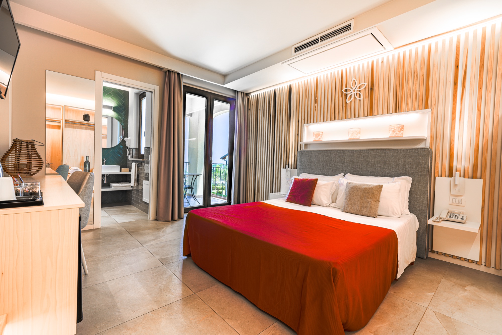 21-25 qm, 1 separates Schlafzimmer, Doppelbett, Sofabett, 1 Bad, Dusche oder Badewanne, WC, Haartrockner, Klimaanlage, Heizung, Minibar kostenpflichtig, Safe, 1 TV (Flachbildschirm), Telefon, Balkon oder Terrasse (möbliert), bei Ankunft im Zimmer Wasser