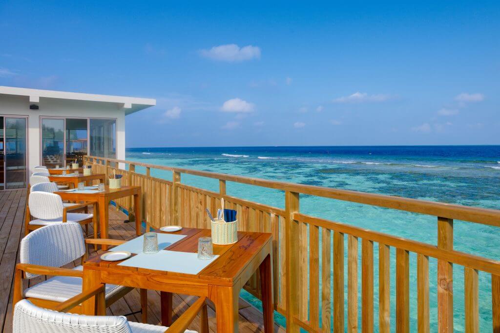 Frühstück (Buffet), Mittagessen (Buffet), Abendessen (Buffet), Getränke kostenfrei (Softdrinks, Mineralwasser, Kaffee/Tee, Bier, Säfte, Mocktails, Hauswein, Cocktails, Sekt, Spirituosen, 9-1 Uhr), Snacks (16-18:30 Uhr), Minibar (Auffüllung täglich, Softdrinks, Mineralwasser, Bier), ein Abendessen im à-la-carte-Restaurant „Raga Route“ oder „Just Grill“ ab 4 Nächten Aufenthalt, 2 Abendessen ab 8 Nächten Aufenthalt und 3 Abendessen ab 14 Nächten Aufenthalt im à-la-carte-Restaurant, 2 Bootsausflüge pro Gast/Aufenthalt (traditionelles Angeln am Morgen und Dhoni-Fahrt zum Sonnenuntergang)
