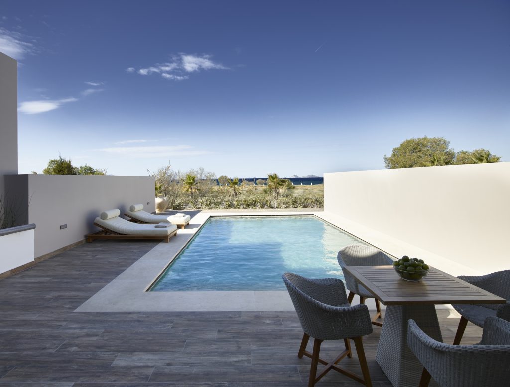 51-60 qm, Villa, Superior, Meerblick, optisch getrennter Wohn-/Schlafbereich, 1 Doppelbett (Kingsize), 1 Sofabett, 1 Bad, Dusche, Badewanne, Whirlwanne, WC, Haartrockner, Kosmetikspiegel, Klimaanlage, individuell regulierbar, Safe, 1 TV (Sat-TV, Flachbildschirm), Telefon, WLAN, Kaffee/Tee, Kühlschrank, Terrasse (möbliert), direkter Poolzugang, Privatpool, hochwertige Badartikel