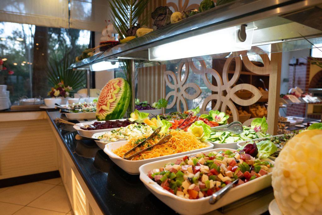 Hier erhältst du abwechslungsreiche Büfetts, die aus tunesischen und europäischen Spezialitäten bestehen. Die verschiedenen ofenfrischen Brotsorten verwöhnen die Gaumen der Gäste ebenso wie die ausgewählten Käsespezialitäten, verlockenden Suppen, variationsreichen Salate und Schlemmergerichte.