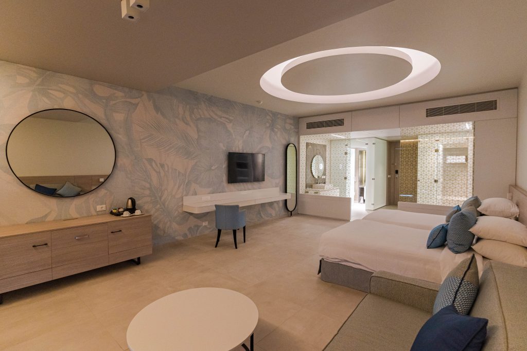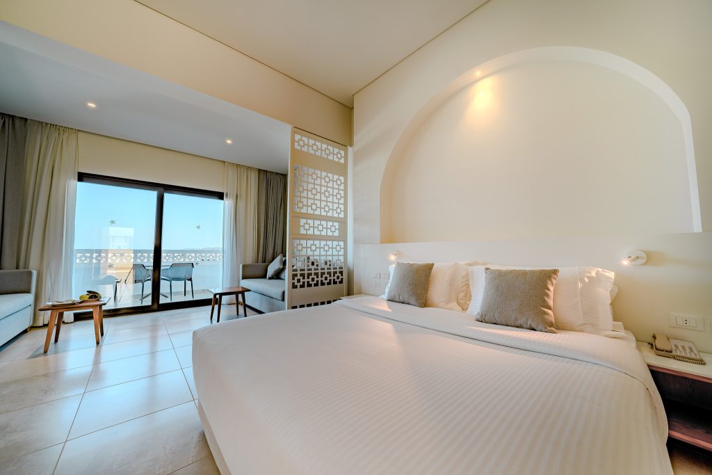50 qm, 2 separate Schlafzimmer, Meerblick, Pool- oder Gartenblick, renoviert (2023), Sofabett, Dusche, bodengleiche Dusche, Bidet, Bademantel, Badeslipper, Haartrockner, Kosmetikspiegel, Fliesen, Klimaanlage, Minibar kostenpflichtig, Safe, TV (Smart-TV), Wasserkocher, Espressomaschine, Kaffee/Tee, Balkon oder Terrasse (möbliert), privilegierter Zimmerservice, bei Ankunft im Zimmer Wasser