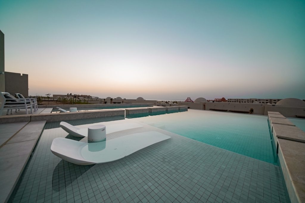 55 qm, Meerblick, Ankleidebereich, Sitzecke, Dusche, bodengleiche Dusche, Bidet, Bademantel, Badeslipper, Haartrockner, Kosmetikspiegel, Klimaanlage, Minibar kostenpflichtig, Safe, TV (Smart-TV), Wasserkocher, Espressomaschine, Kaffee/Tee, Terrasse (möbliert), direkter Poolzugang, Butlerservice, privilegierter Zimmerservice, Wäscheservice (begrenzte Anzahl: 4kg pro Aufenthalt), Aufdeck-Service, bei Ankunft im Zimmer Wasser